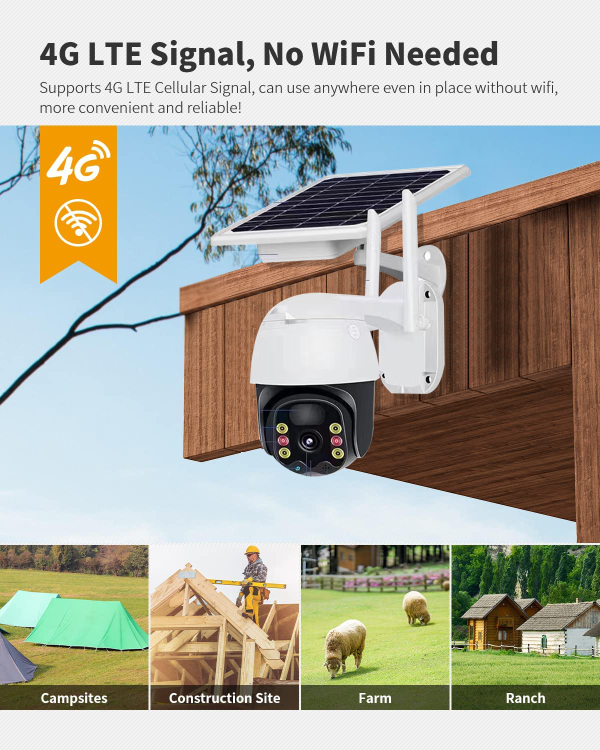 Low Power Intelligent Security Full Color PTZ V380 Pro Wireless CCTV Solar 4G Camera Outdoor